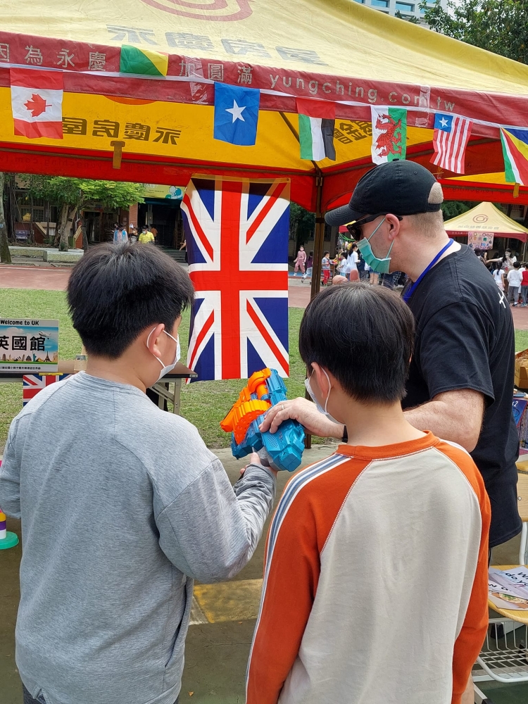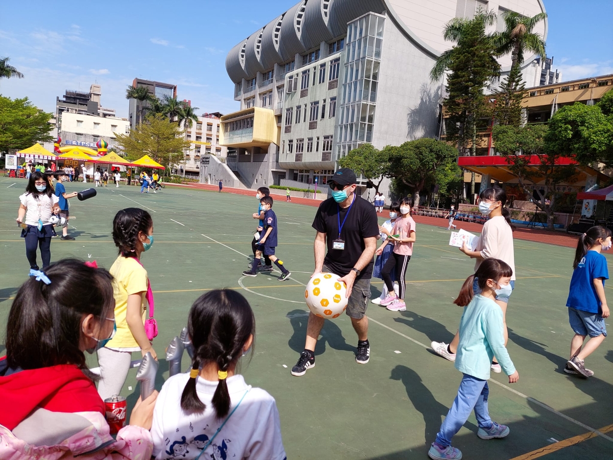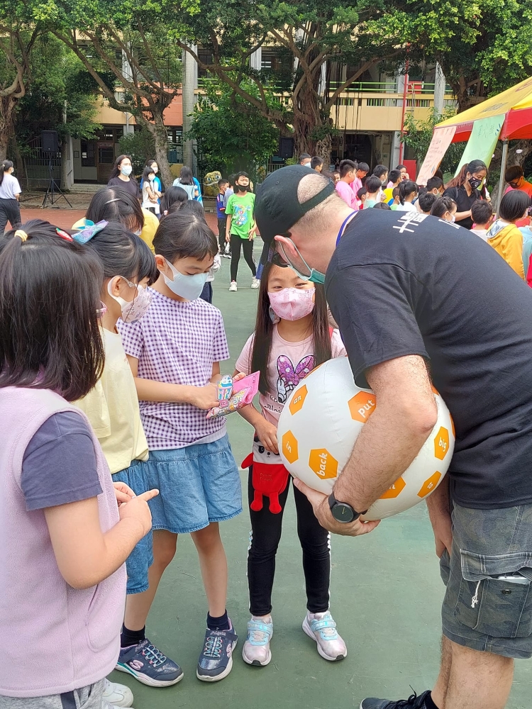 十十在公小當園遊會義工,與小孩同樂 拿出互動式的教具鼓勵孩子開口